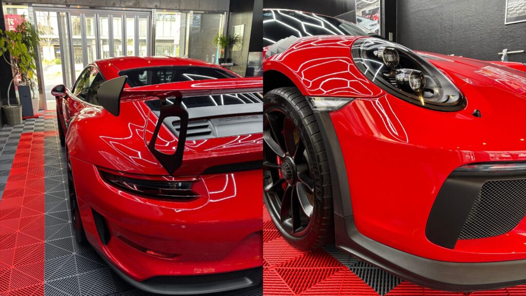 今回は、**PORSCHE GT3 RS(ガーズレッド)**のプロテクションフィルム施工車に